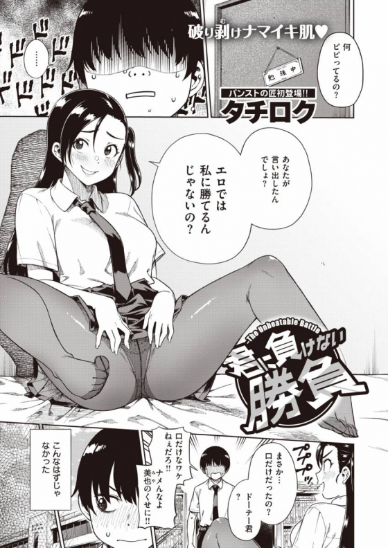 【エロ漫画】君に負けない勝負「どっちがエロいか勝負|パンスト幼馴染」【20枚】