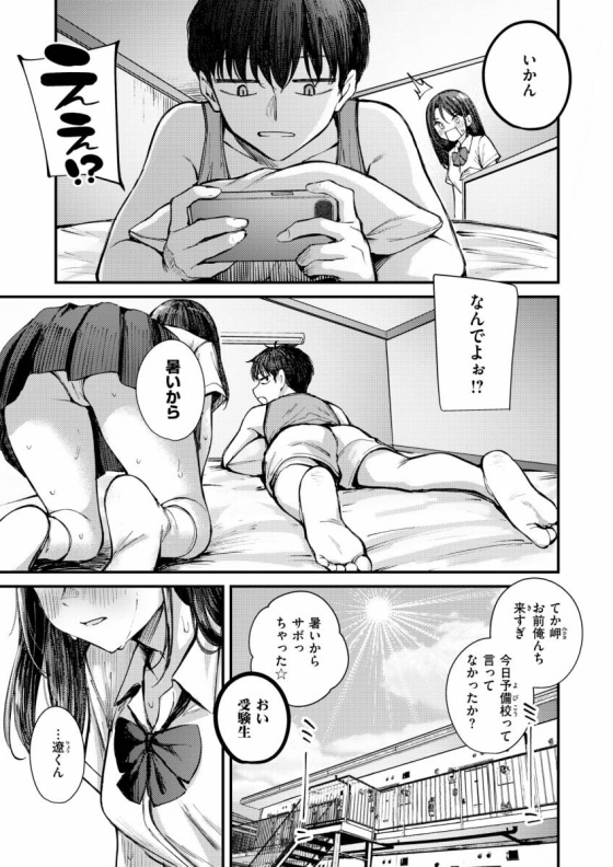 【エロ漫画】夏の約束「ジト目の大学生彼氏とイチャイチャH|受験生の無邪気なJK彼女」【24枚】