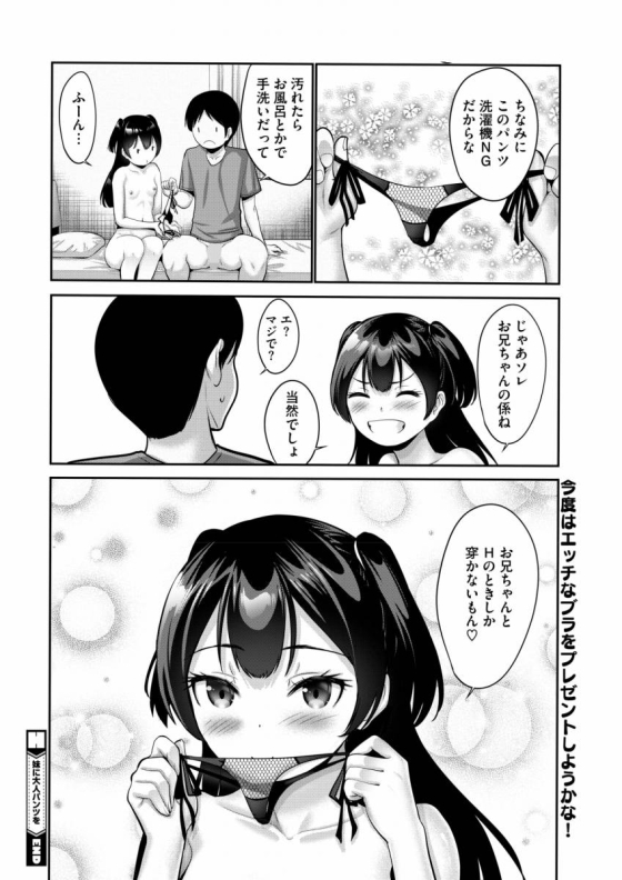 【エロ漫画】妹に大人パンツを「誕生日にお兄ちゃんと潮吹きエッチ|初めてセクシーパンツをはいた妹」【16枚】